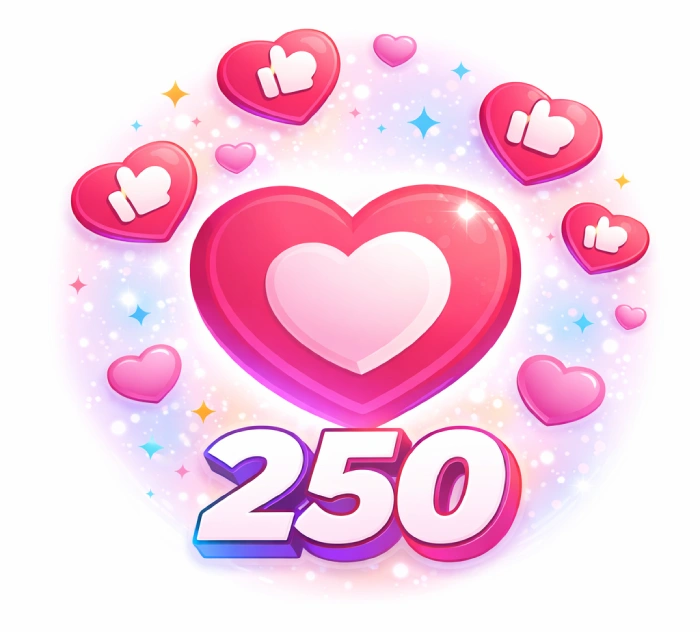 Pacote de 250 curtidas para TikTok, ideal para aumentar prova social e engajamento inicial.
